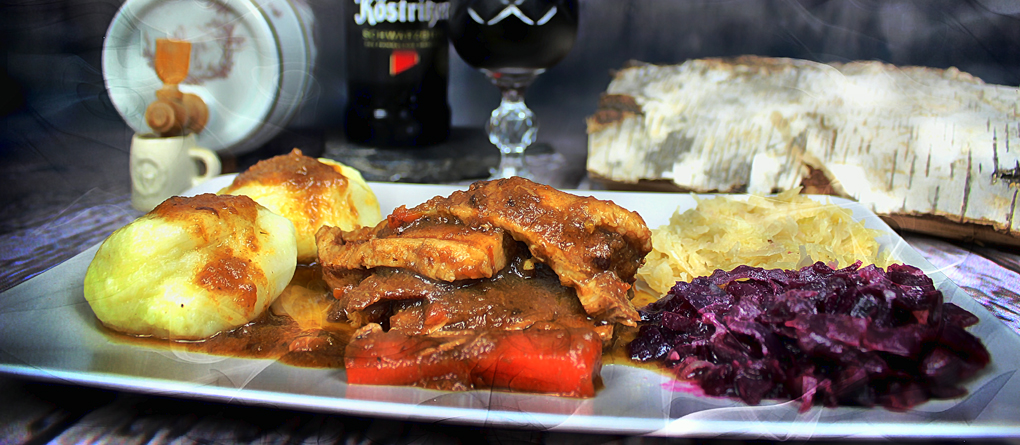 Servieren werden wir das "Schlesische Himmelreich" mit Rotkraut, Sauerkraut sowie Kartoffelklößen.